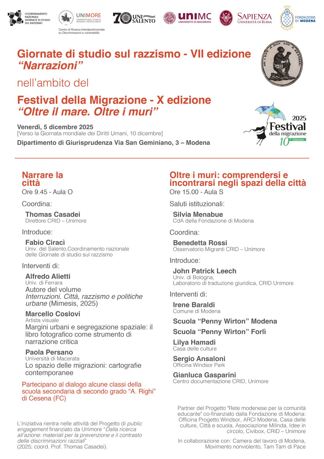 Il 5 dicembre 2025 terrò una lecture nell’ambito delle Giornate di studio sul razzismo – VII edizione “Narrazioni”, parte del Festival della Migrazione – X edizione “Oltre il mare. Oltre i muri”, presso il Dipartimento di Giurisprudenza di Modena.